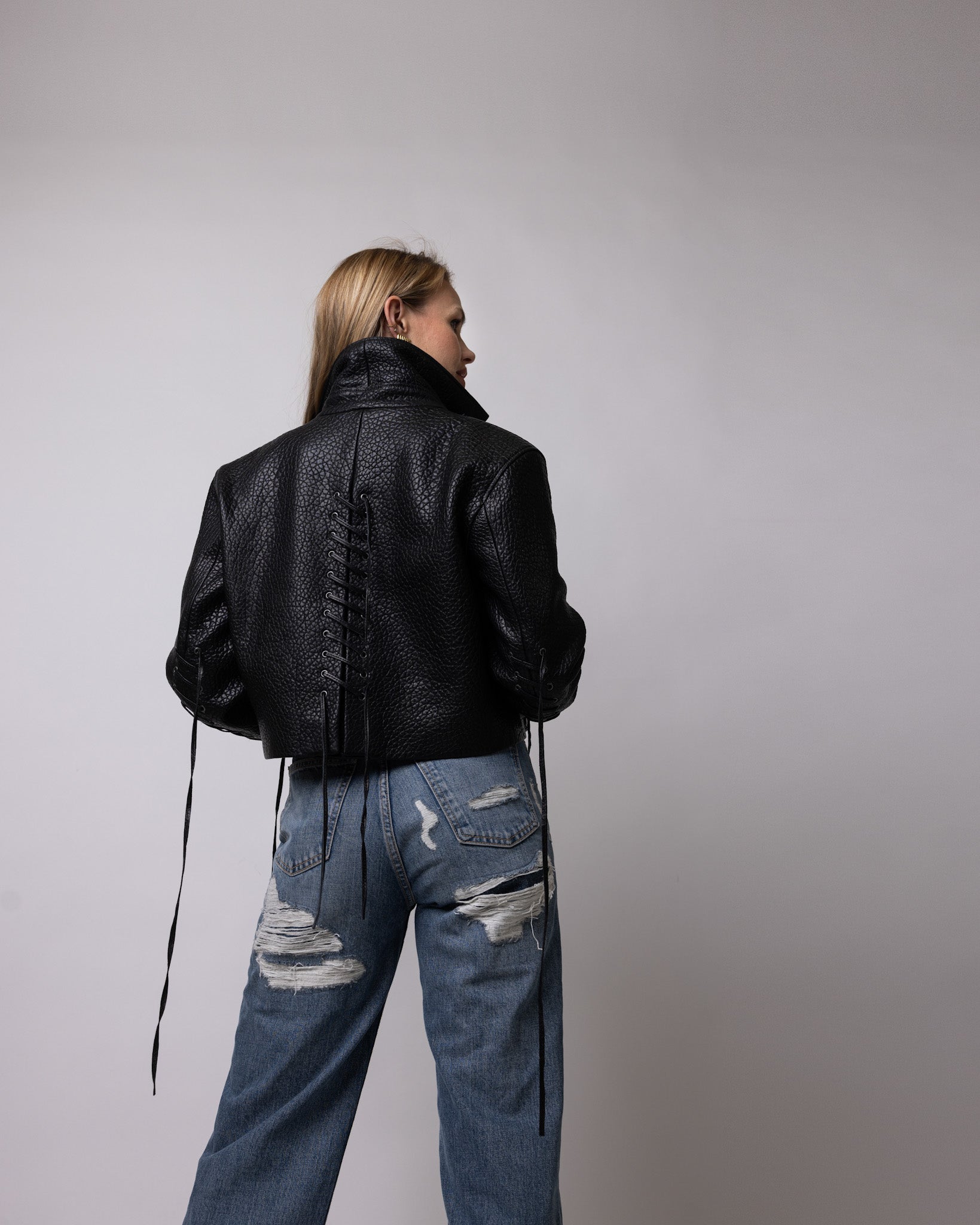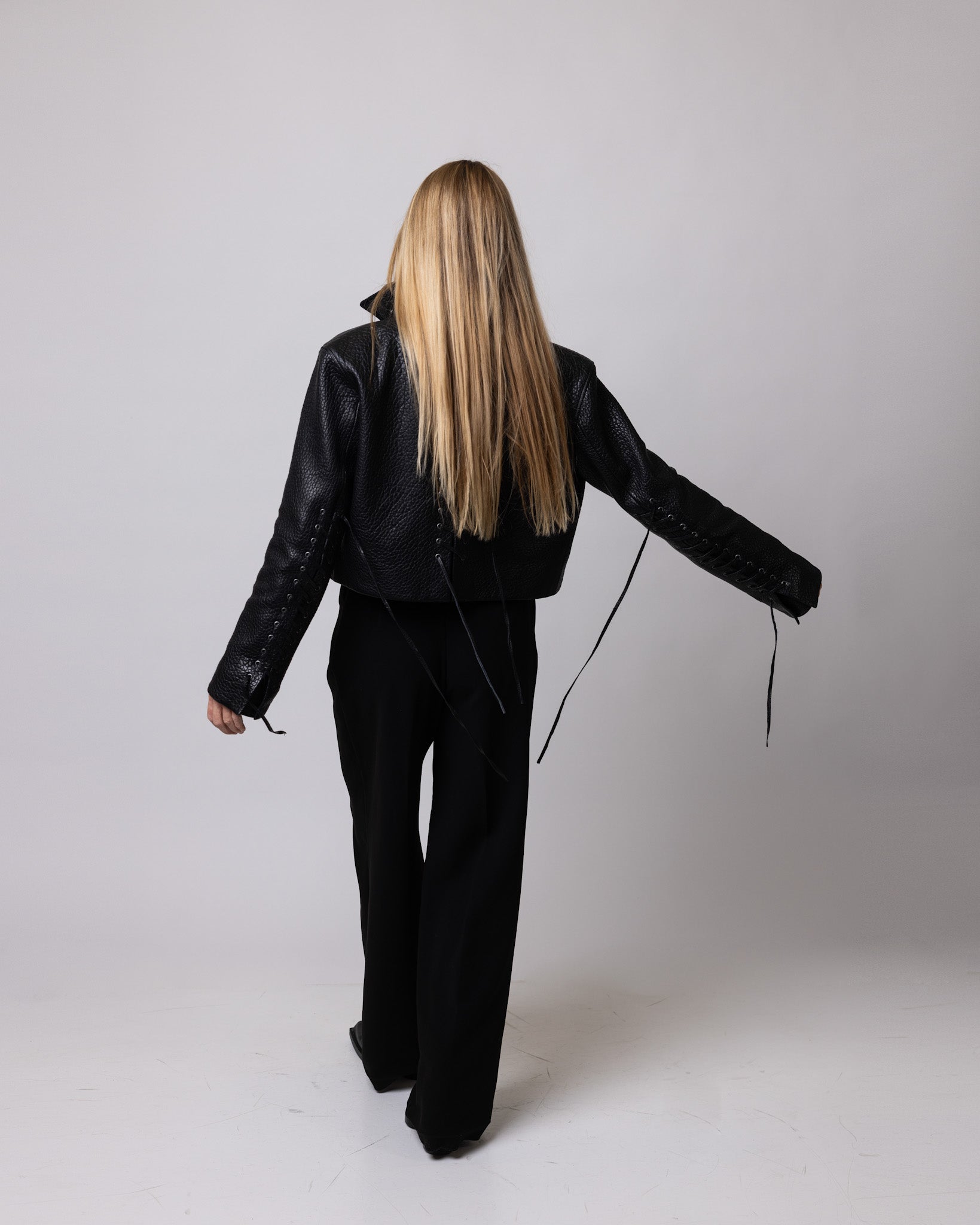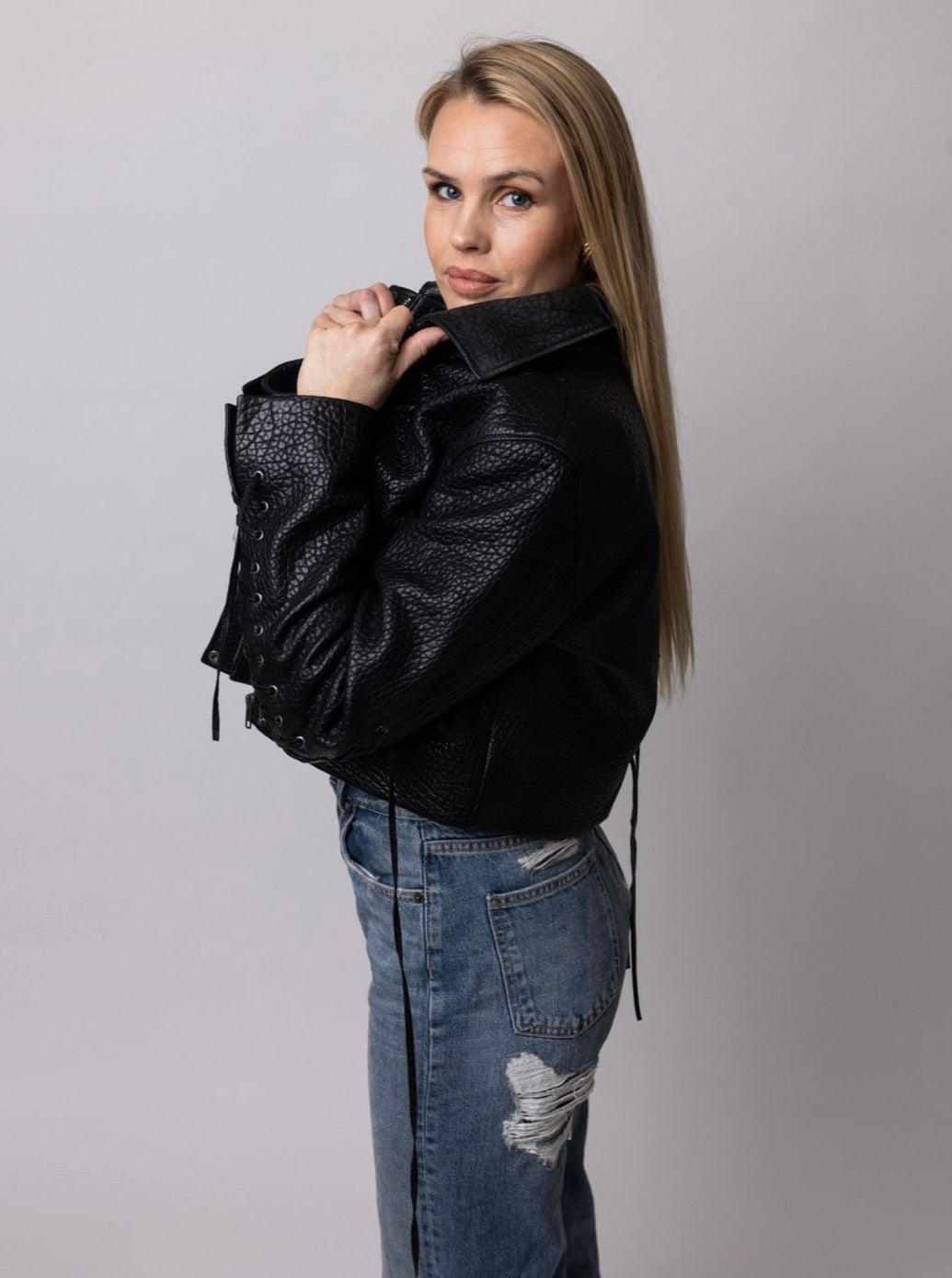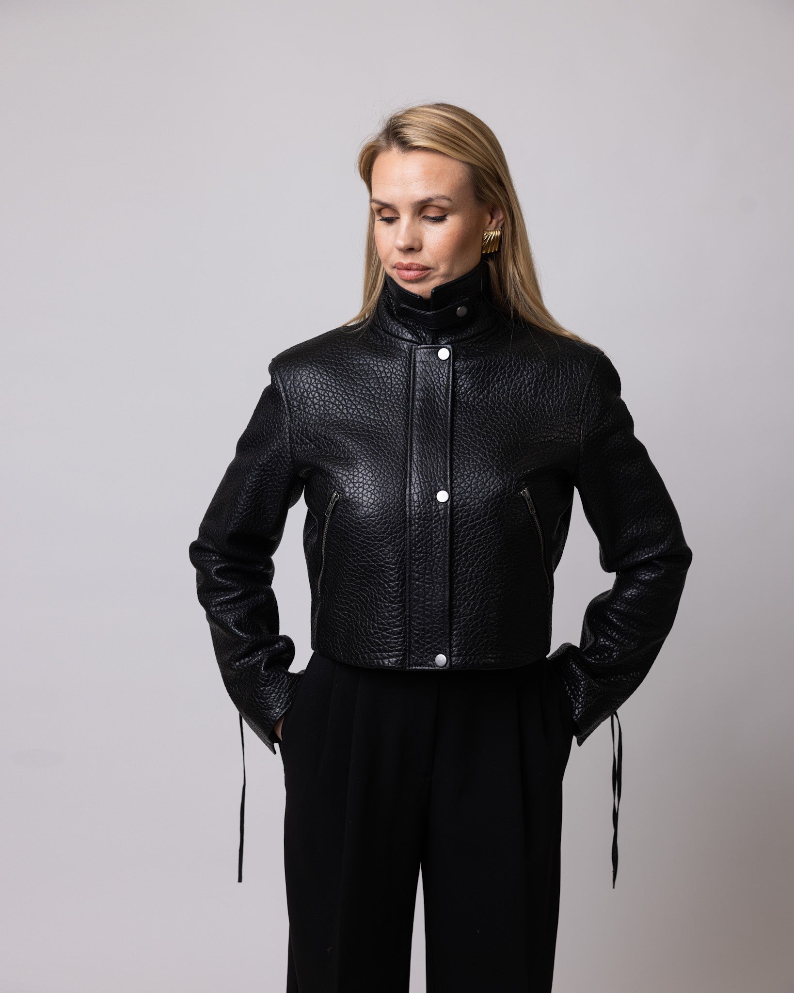 Bubble svarti leðurjakkinn okkar er vandlega hannaður úr 100% ekta lambaskinni og lúxus silkifóðri og geislar af fágun og þægindum. Þessi jakki er hannaður á Íslandi og hentar fullkomlega fyrir öll tilefni.